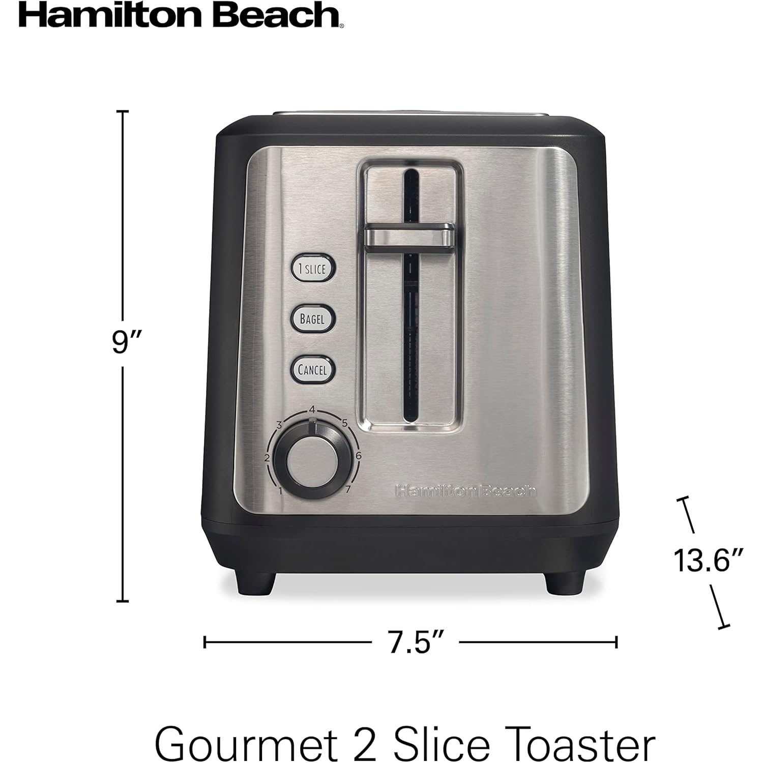 Hamilton Beach Gourmet 2 Slice Slot Toaster with Extra Long & Wide Slots, Sure-Toast Technology, Shade Selector, Bagel Setting, Matte Black and Stainless Steel (22996)