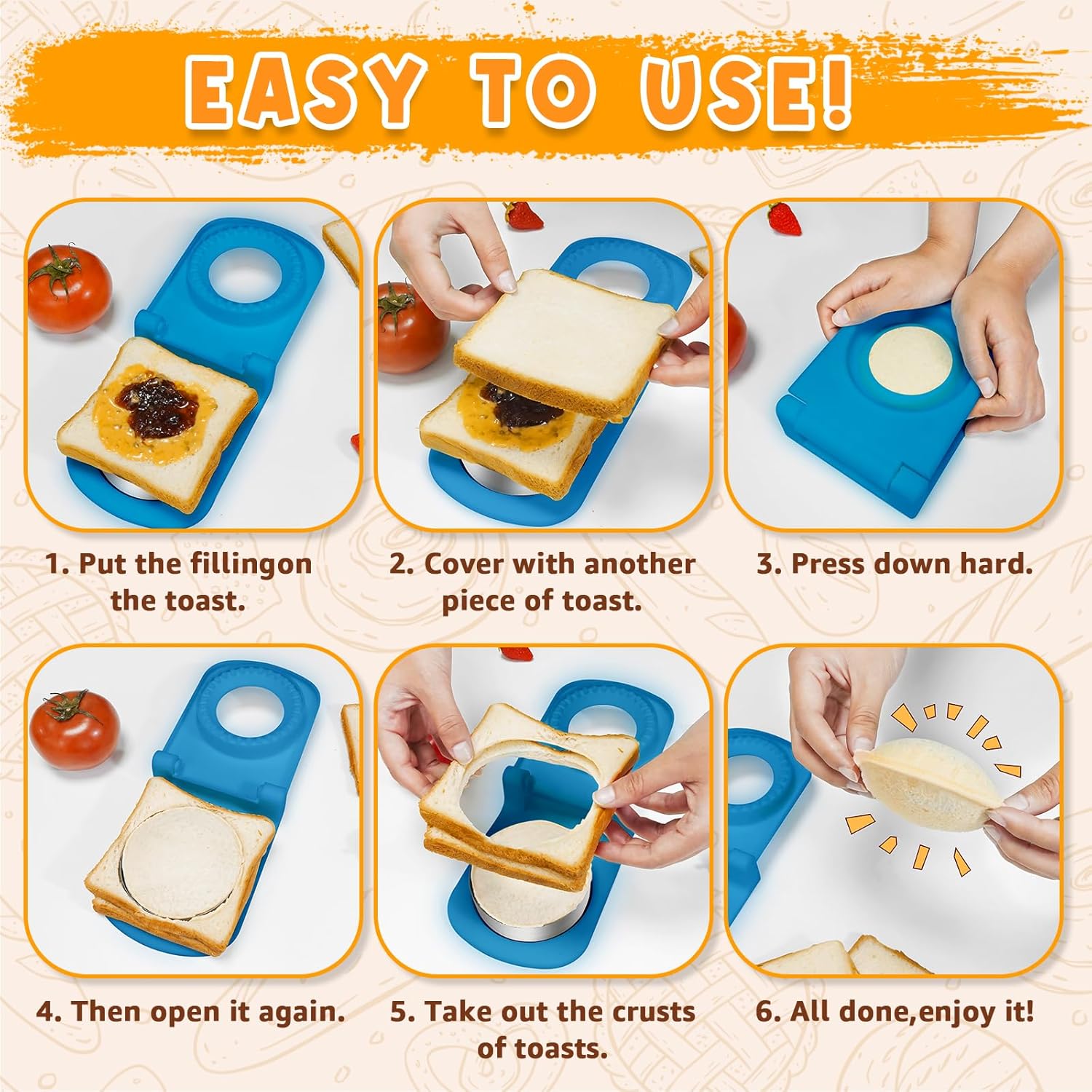 - Metal sandwich cutter is a two-step process: place a slice of bread in the bottom of the cutter and spread the right amount of sauce in the centre according to your taste. The one-step design allows the sharp blade to perfectly cut the shape of the bagged sandwich while sealing the edges of the sandwich to ensure the integrity and taste of the sandwich.